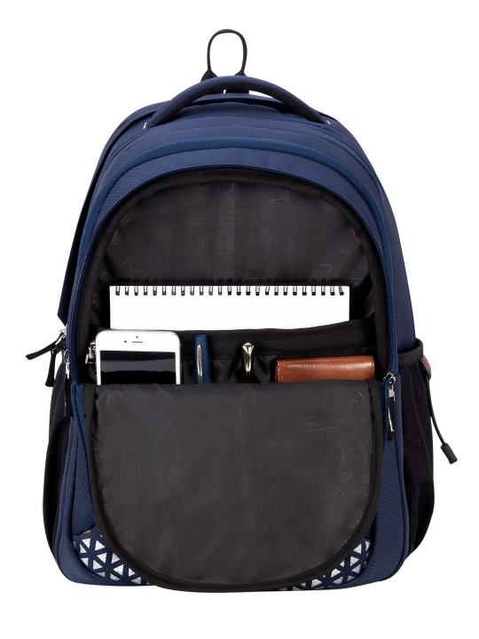 Compartments & Pockets: Four [4] main compartments, One Large front Pocket, Two side mesh Pocket with Water Bottle lock feature.