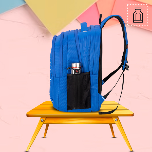 Compartments & Pockets: Four [4] main compartments, One Large front Pocket, Two side mesh Pocket with Water Bottle lock feature.
