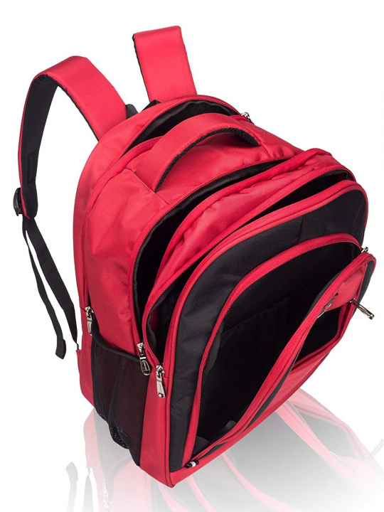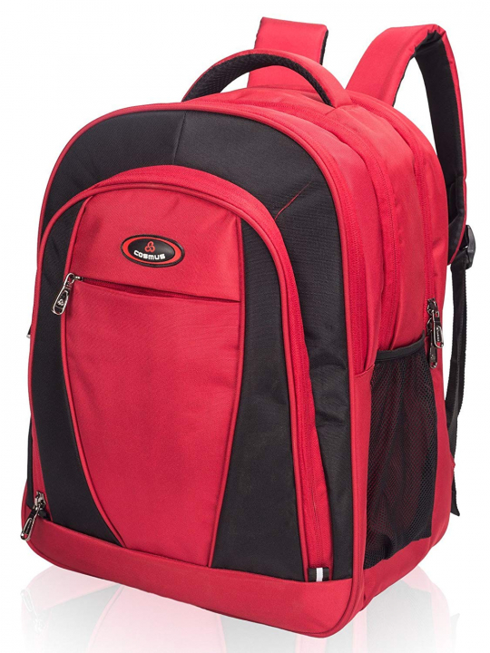A Premium High Quality School Bag Cosmus Edison School Backpack bag is ideal for class 6 to class 10 students, available in 4 vibrant colour combinations. Carry it in style and stand out from regular looking school bags. It has 3  full size large compartments, which has enough space to accommodate all your books and other essential items required daily in school, Organise your books, copies & other project material in very organised way in these 3 large sections. Front organiser pocket is sufficiently big to hold your lunch box and other small items. Well padded shoulder strap & thick padding on the back to ensure ease of carrying. Dimension:  13.00x18.25x9.50 (WxHxD) in inches: Weight: 835 gm  Material: Durable HD coated 900D Polyester water resistance Fabric. Color: Black & Red Capacity : 37 litre