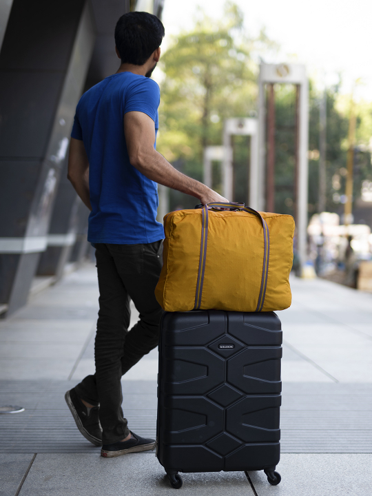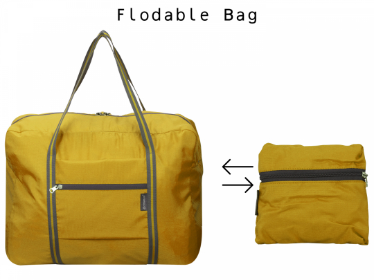 Dual zipper elegant design, foldable and lightweight travel tote bag, with top Side handles and in-trolley fit space.