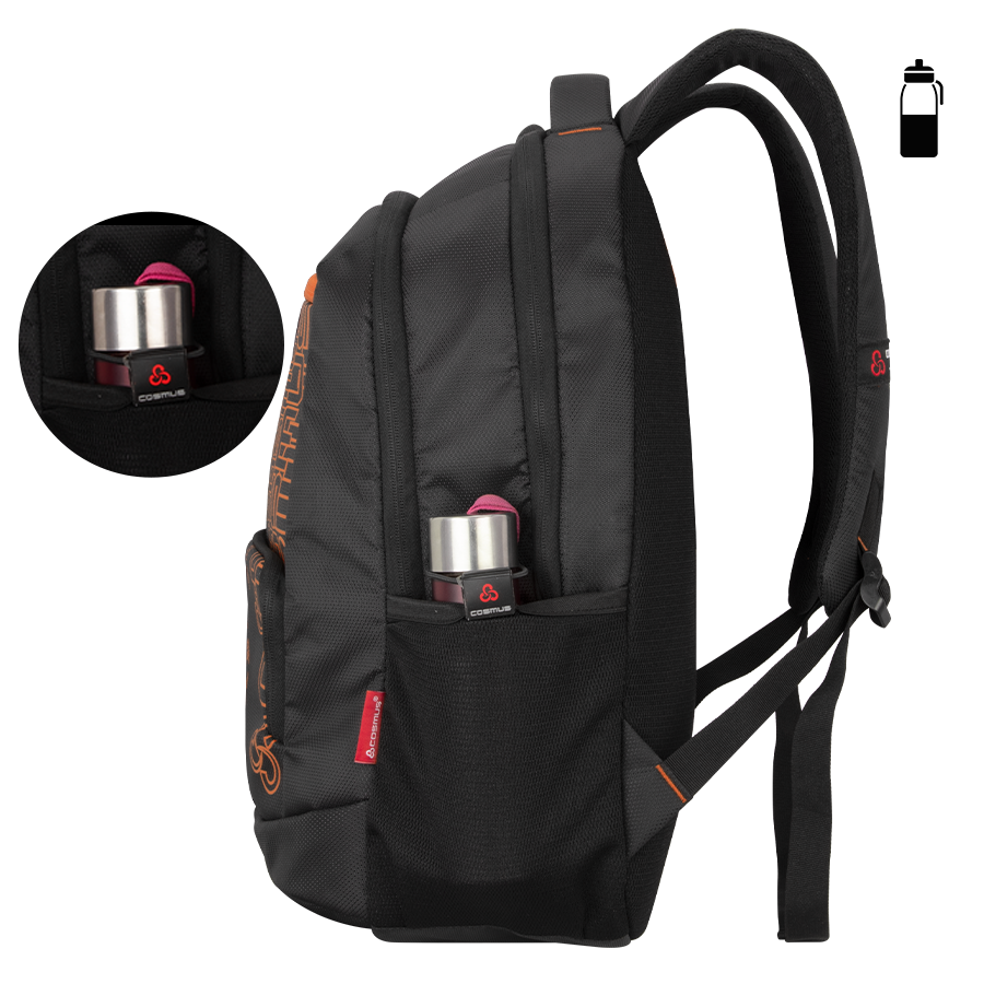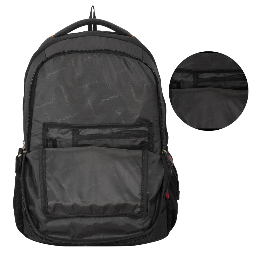 It features 2 large well padded zippered compartments and One large easy access front pocket. Well padded laptop section fits upto 15.6 inch laptop, middle compartment is big enough to hold your office or weekend trip cloths or daily use belongings, front compartment with organizer section is to keep all official documents and small electronic gadgets, you can use it to store the charger, mouse, pen drive, notepad, pen and other essentials it also has one front zippered pockets for easy access items,. Cosmus Houston backpack features two mesh side pockets, where you can keep your water bottle or any other item for an quick access.