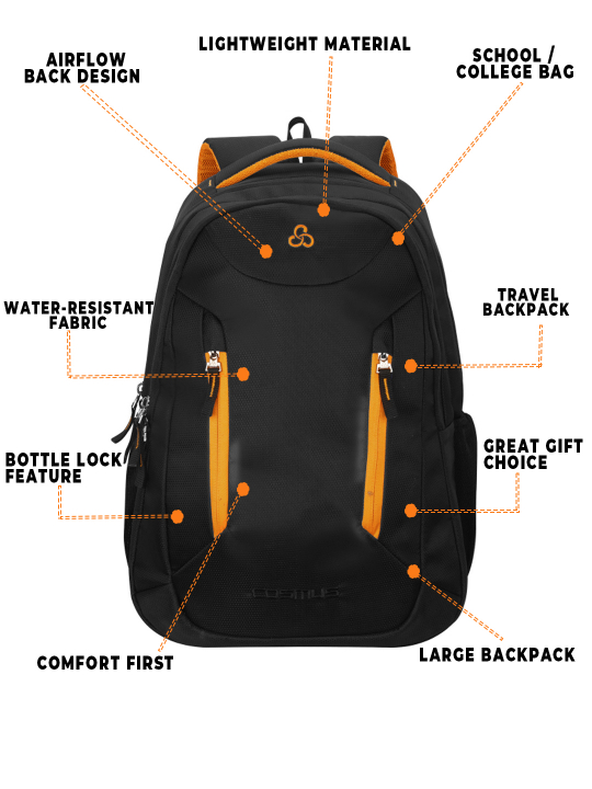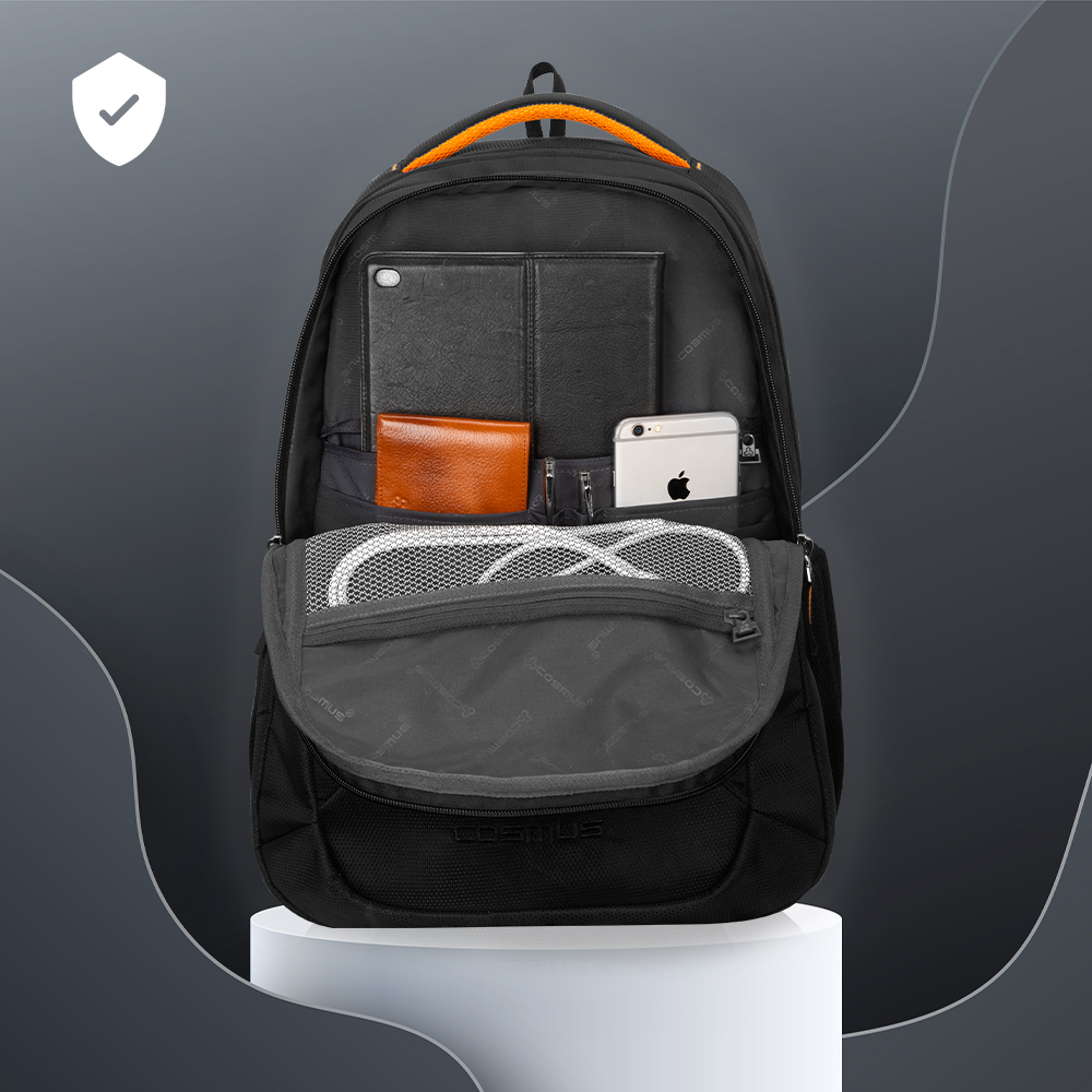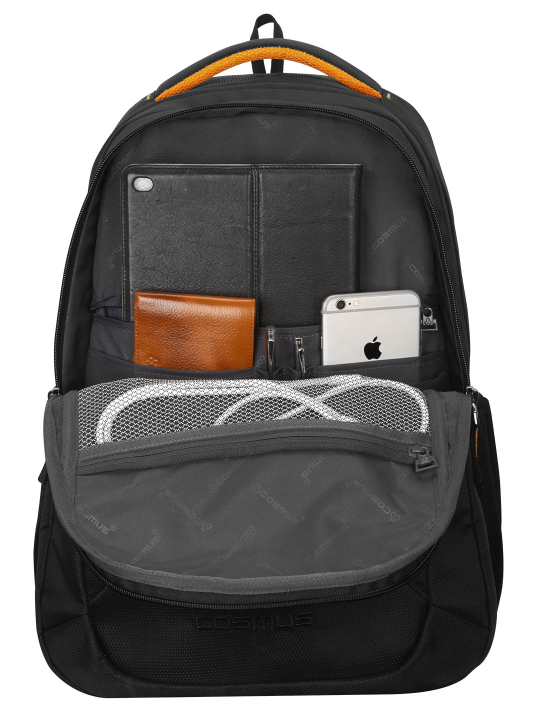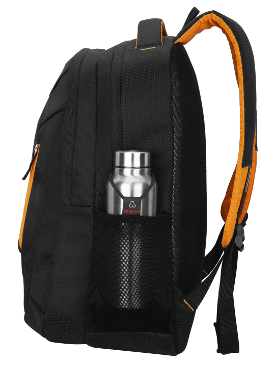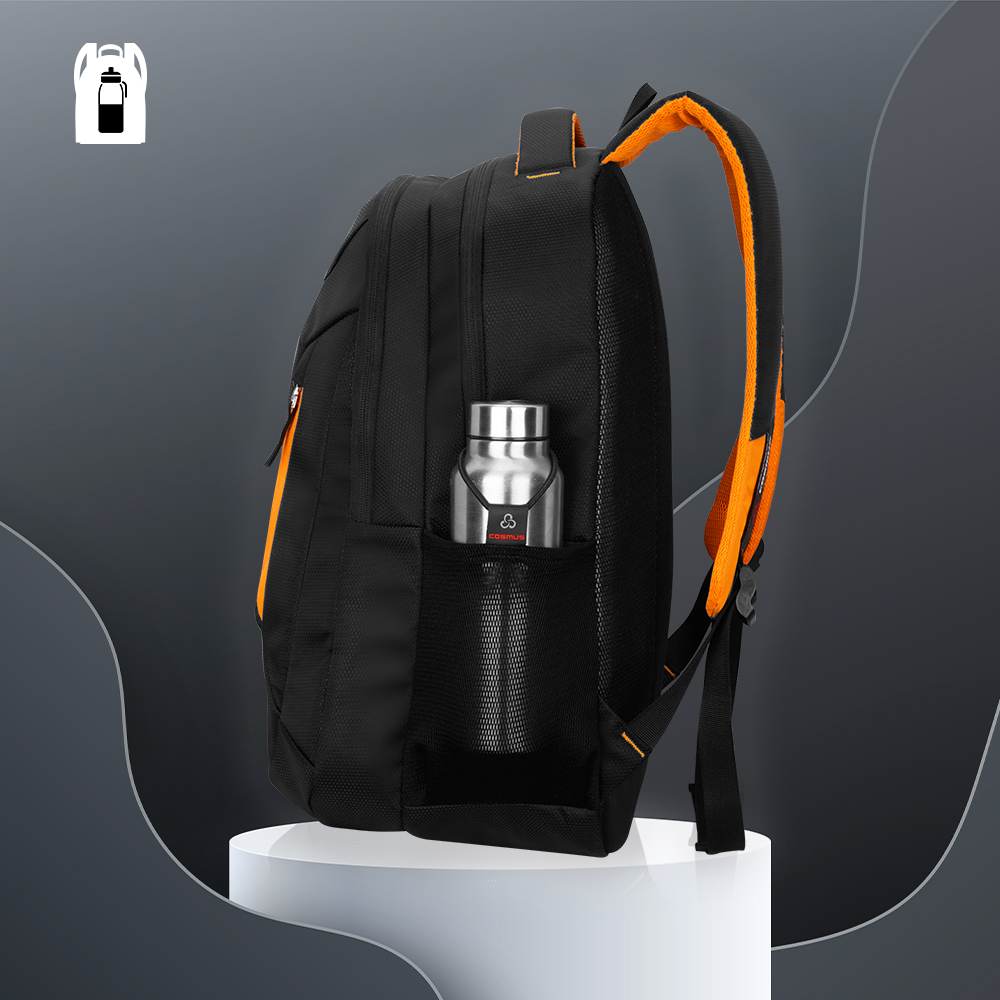 It features 2 large well padded zippered compartments and One large easy access front pocket. Well padded laptop section fits upto 15.6 inch laptop, middle compartment is big enough to hold your office or weekend trip cloths or daily use belongings, front compartment with organizer section is to keep all official documents and small electronic gadgets, you can use it to store the charger, mouse, pen drive, notepad, pen and other essentials it also has one front zippered pockets for easy access items,. Cosmus Sliden backpack features two mesh side pockets, where you can keep your water bottle or any other item for an quick access.